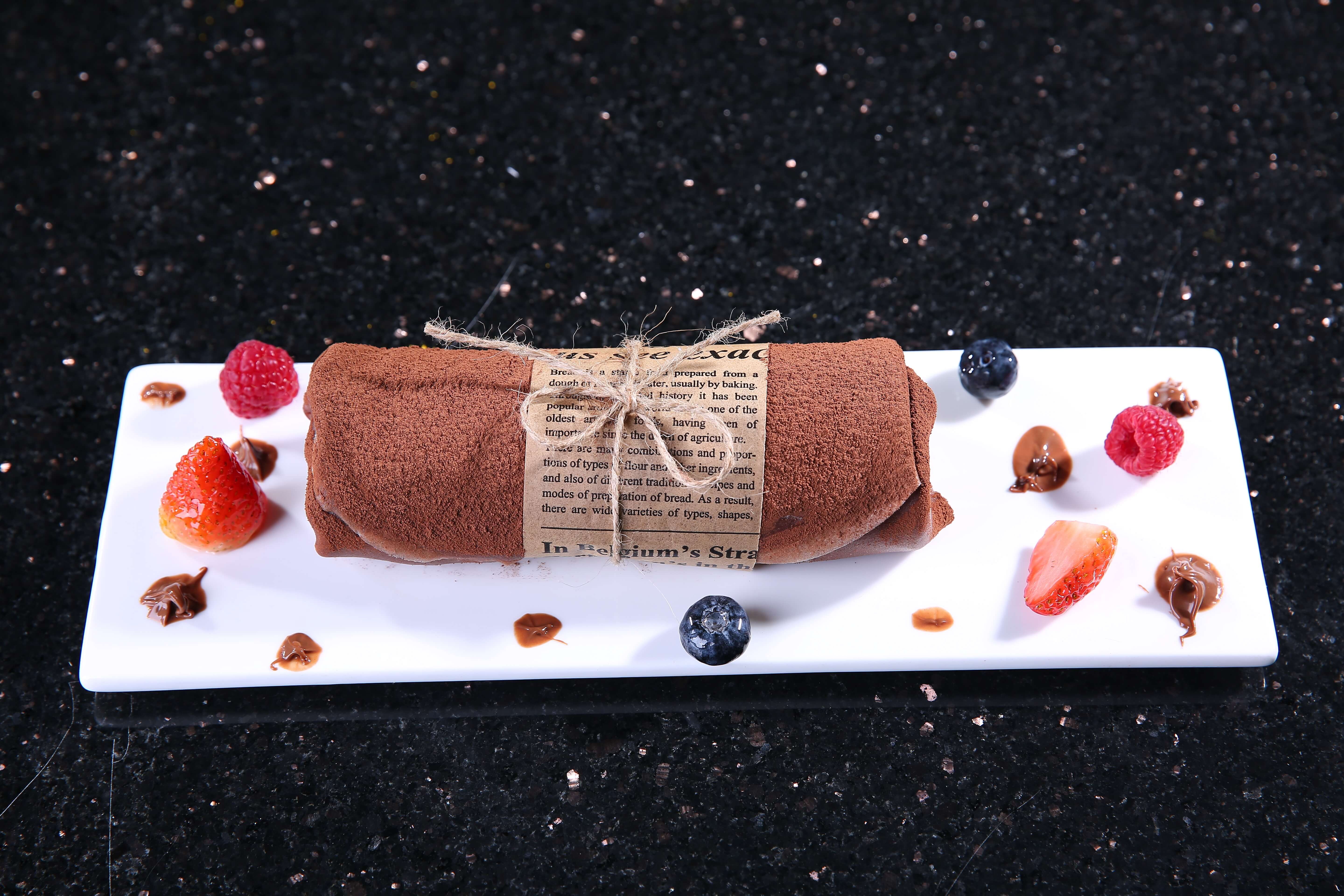 备注:可丽饼皮部分: 1:先将鸡蛋和细砂糖搅拌至糖化 2;;;;;;;然后将面粉和可可粉加入搅拌至无颗粒 3;;;;;;;牛奶和黄油,,,,,盐隔水化开至38度 4;;;;;;;分次加入面糊中搅拌至无颗粒状态,,,,,然后冷藏生涯1小时 5;;;;;;;用直径29cm的平底锅煎至起泡即可出锅冷却备用 6:每张皮的重量为50g 7;;;;;;;2张可丽饼皮上下叠起,,,,,中心涂抹60g调味好的奶油,,,,,然后放上88g榛子酱,,,,,由上往下卷起然后外貌撒上可可粉装饰,,,,,最后用一片油纸包起中心部分 榛子巧克力单品的皮重量为:50g*2 榛子巧克力单品的奶油重量为:60g 榛子巧克力单品的榛子酱的重量为:8g 榛子巧克力单品的可可粉重量为:3g 所有配方可以做11个产品